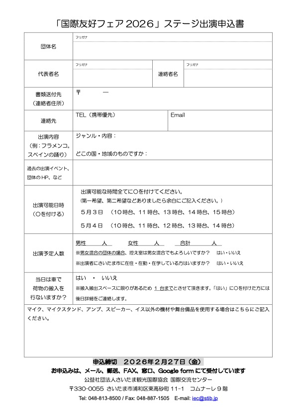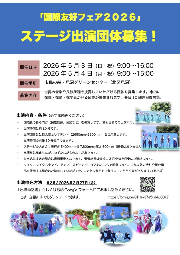 国際友好フェア2026【出演団体募集開始】