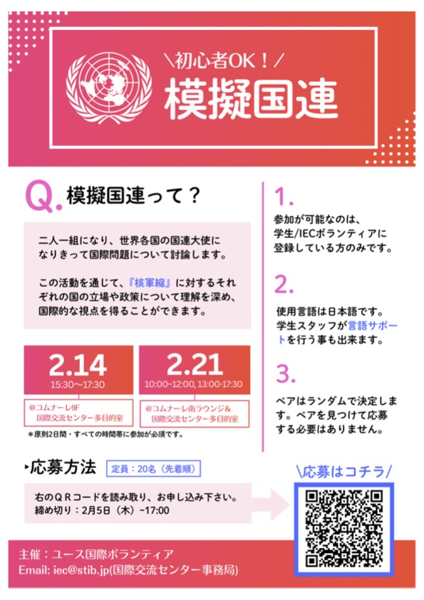 🇺🇳「模擬国連」参加者募集中