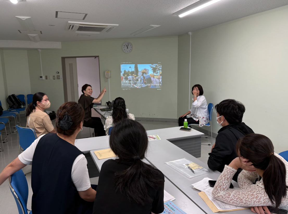 ◆5組の親子の方(フィリピン・中国・ネパール)にご参加いただきました。やさしい日本語や、それぞれの母国語で話しながら 書類を書くお手伝いをしました。その後は、「にほんのがっこうの1にち」の 動画を見ながら、学校での生活をお話ししました。