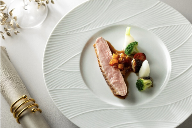 滋賀県高島市で豊かな自然の中で、ストレスを与えない環境づくりを重視した飼育が行われ、肉質が柔らかく、臭みの少ない上質な近江鴨を使ったメニューを用意。クリスマスコース:近江鴨の他、フォアグラ、オマール海老、白子などクリスマスを彩る豪華食材メニュー。クリスマスランチコース:近江鴨のコンフィで華やかなランチコース。デザート、コーヒー付。